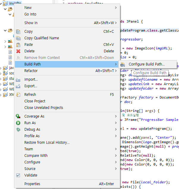 프로젝트 Build Path -> Configure Build Path 들어가서
